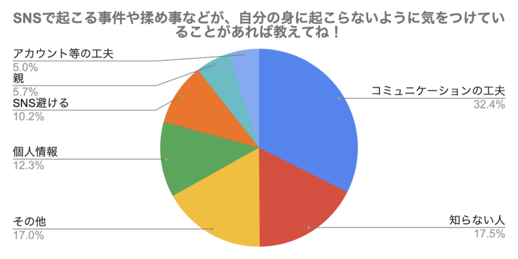 SNSで起こる事件や揉め事などが、自分の身に起こらないように気をつけていることがあれば教えてね!