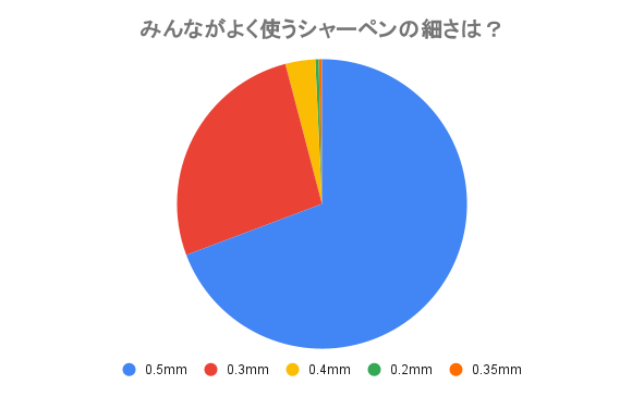 調査で人気が高かったのは、芯の太さ0.5mmのシャープペン。折れにくく、太すぎず細すぎずで集中力を妨げずに勉強ができるのが理由です。