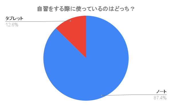 ノート派が大多数。特に数学、国語、社会でノートを使う子が多く、数式や漢字など“書いて覚える”勉強には欠かせないようです。