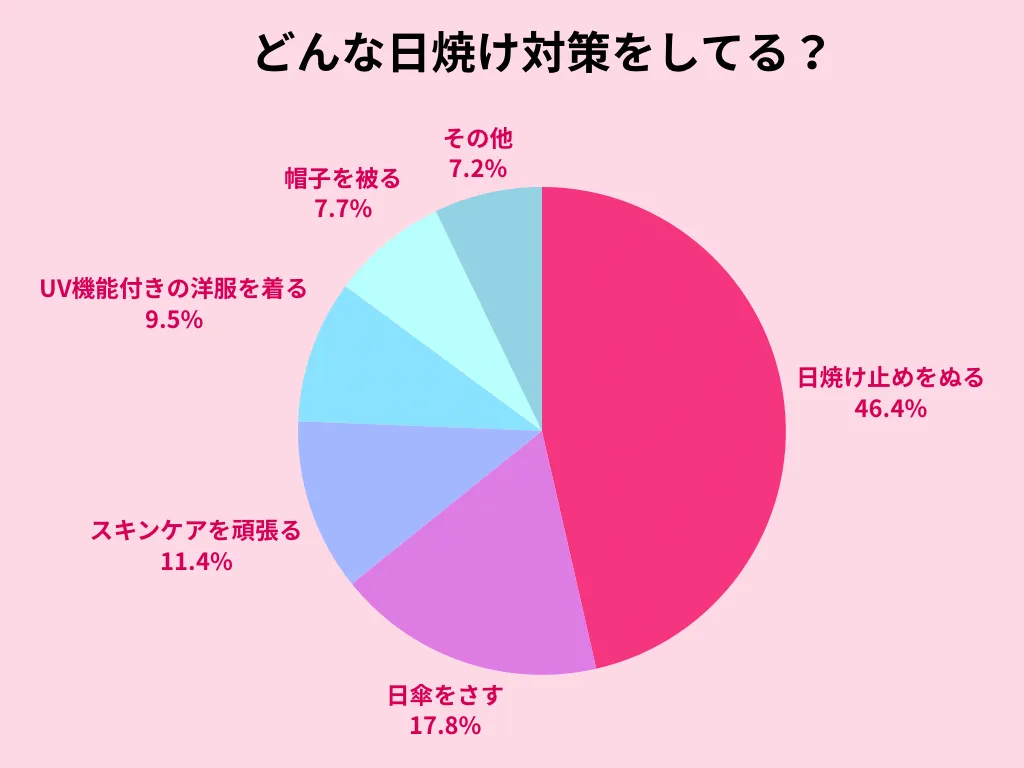 回答数は少なめでしたが、食事から日焼け対策を意識しているという声も。リコピンたっぷりのトマトを食べたり、ビタミンCやEを摂ったりするなど、普段の食事からも肌を守る工夫をしていました。「食べ物での日焼け対策」は、知ればすぐに取り入れられる新しい選択肢として、これからもっと広まりそうです。