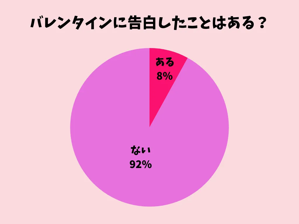 「ある」は8%と少数派。チョコは渡しても、告白まではしないという人が多く、バレンタインは告白イベントではなく、好きな人とのコミュニケーションを取るイベントとして楽しむ派が主流のようです。