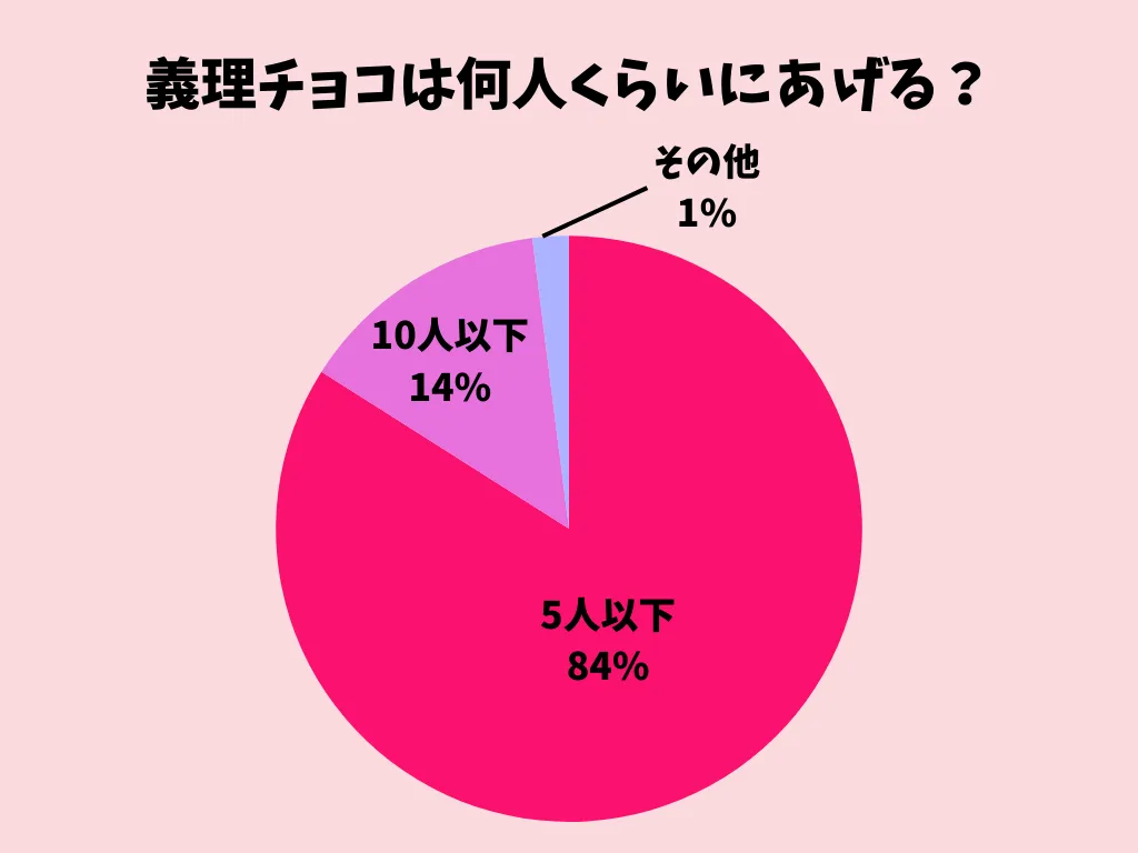 友チョコは「10人以下」が多数派のよう。仲のいい友だちにできるだけ渡せるよう、無理のない範囲で楽しんでいる様子がうかがえます。