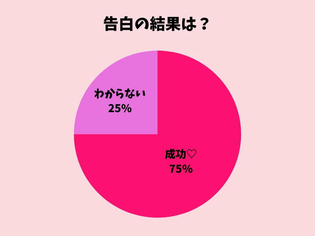 告白したという子に結果を聞くと、成功が75%という結果に。サンプルは少ないものの、バレンタインという特別な日が、背中を押してくれるきっかけになっているのかもしれません。また、今回は「失敗した」という回答は見られませんでした。