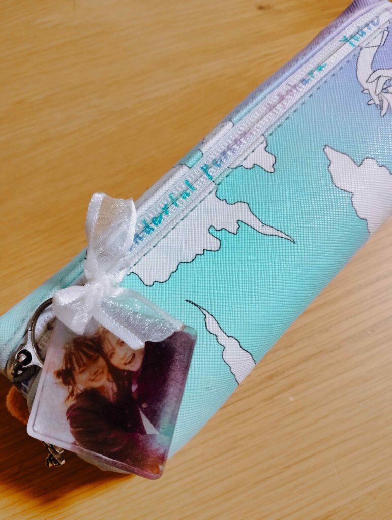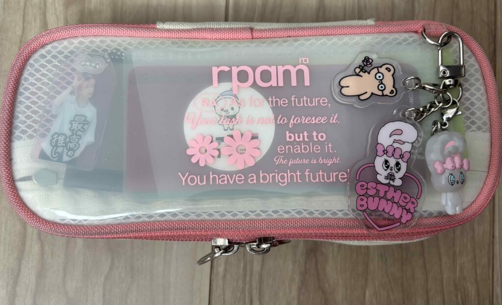 「クリアなペンケースにして、推しのアクスタをながめられるようにしてる!あと、チャームの色をペンケースの色と合わせてる!」(中学3年生)