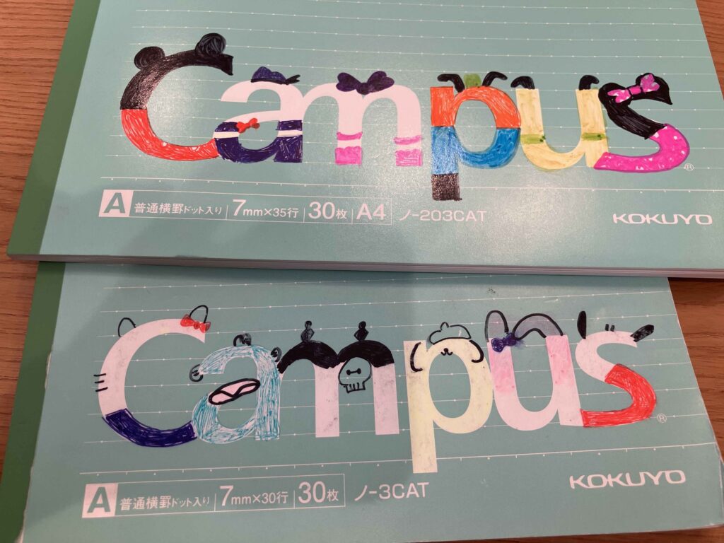 「キャンパスノートを、ディズニー風やサンリオ風にデコ!」(中学1年生)