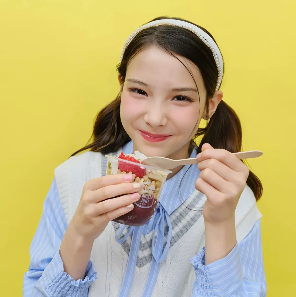 リナ☆ベスト&ワンピース¥24200/メゾ ピアノ ジュニア カチューシャ(3個セット)¥330/パリスキッズ原宿本店 アサイーボウル¥990/ラニカイジュース